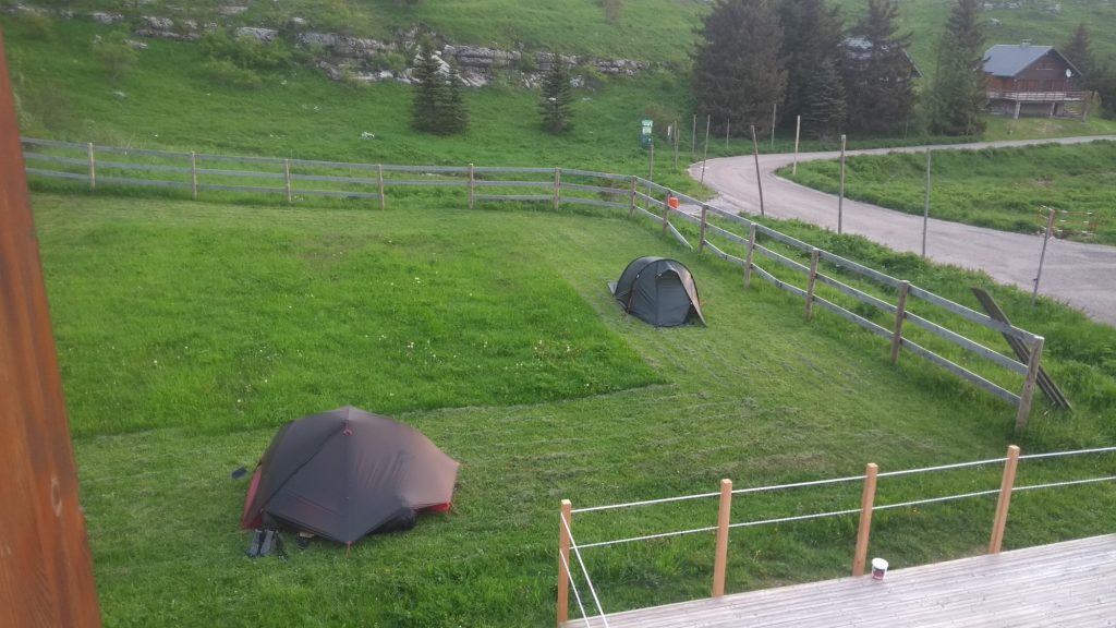 Nous disposons aussi d’un espace bivouac très sympa, afin de permettre à ceux qui préfèrent dormir sous leur tente (avec leur propre matériel) de profiter de la demi pension et des sanitaires.