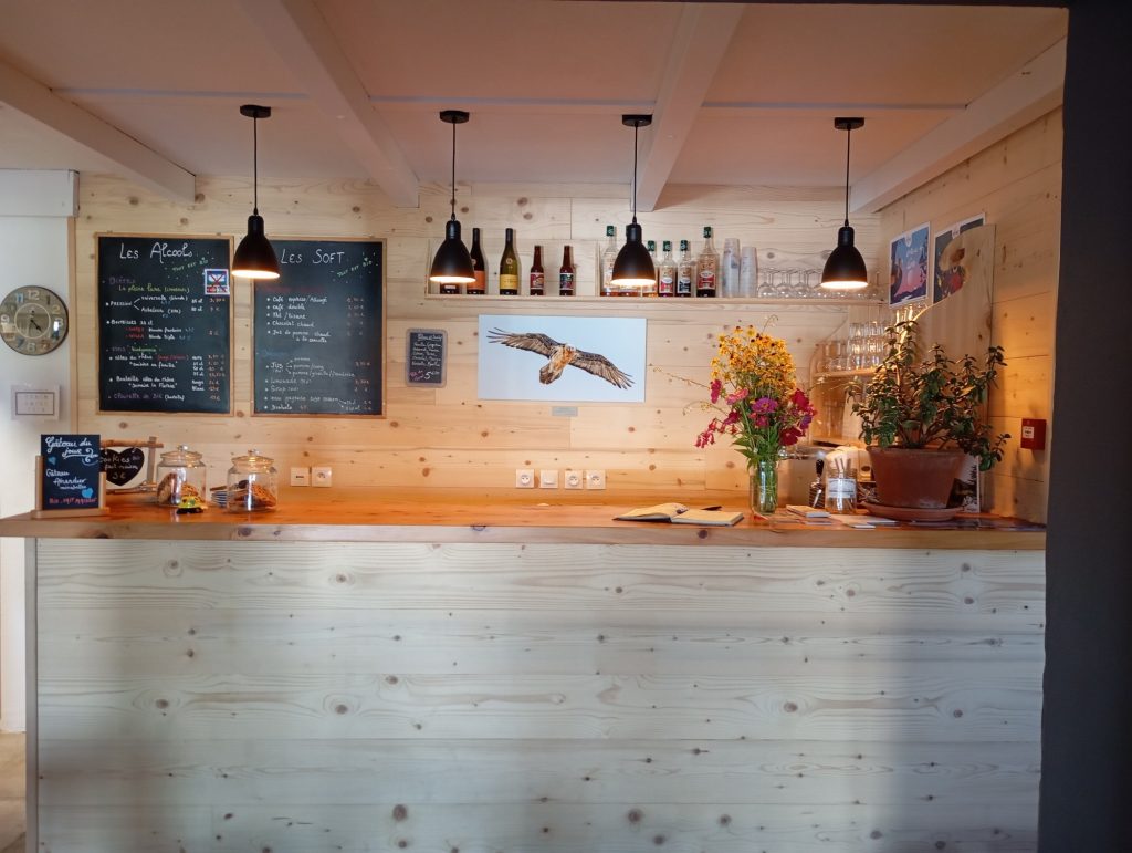 Nous avons un petit bar ouvert en journée avec la possibilité de se rafraîchir avec une carte locale. Nous serons très heureux de vous accueillir!